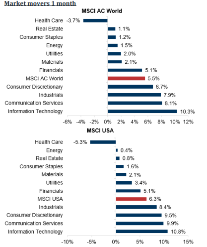 Mirando a nivel global, el sentimiento empresarial repuntó desde principios de mayo. Esto probablemente esté impulsado por el progreso en las negociaciones comerciales y la sólida temporada de beneficios. Además, los tipos de interés rebotaron significativamente, con el bono a 10 años de EE.UU. subiendo +40 puntos básicos en mayo y llegando por encima del 4,5% por primera vez desde febrero y con el bono a 30 años por encima del 5,15%. Esto fue afectado por una serie de factores, en particular las preocupaciones en torno al déficit presupuestario y las negociaciones arancelarias. En las últimas semanas, hemos visto a los inversores obligados a volver al mercado, especialmente en EE.UU., donde vimos una rotación de salida tras el Liberation Day.