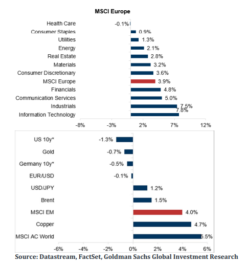 En los siguientes gráficos se puede observar de forma detallada la evolución de flujos de inversores hacia los distintos sectores. Los sectores defensivos lo han hecho peor que los cíclicos en general. La tecnología cerró fuerte, impulsada por los beneficios anunciados de la tecnología estadounidense, con el NDX +9%.