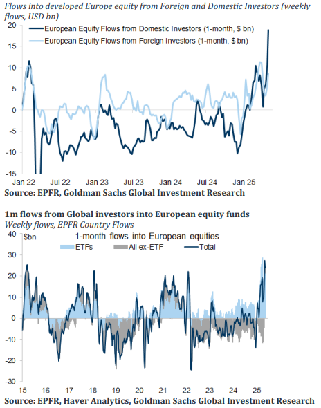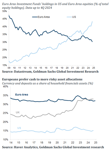 Europa sigue recibiendo flujos de inversores extranjeros, especialmente americanos, y es la razón fundamental del mejor comportamiento relativo de estos últimos meses. Los inversores europeos, mientras tanto, siguen teniendo más peso en renta fija en sus carteras, situación que ha sido así históricamente. Es previsible que esta tendencia se mantenga en el futuro cercano debido a la debilidad del dólar y la mejor valoración relativa.